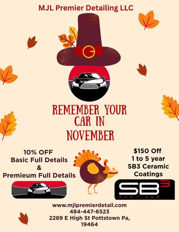 Remember Your Car In November Sale! 10% OFF Full Details & $150 OFF Ceramic Coatings